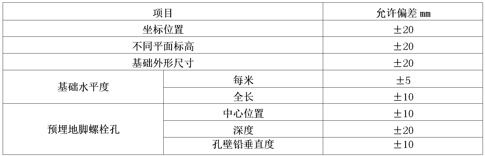 表4. 2.1水泵基礎(chǔ)尺寸允許偏差